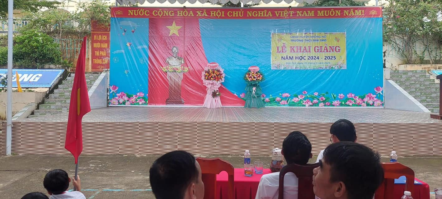 Sáng ngày 5/9/2024, Trường THCS Đắk Drô đã long trọng tổ chức Lễ khai giảng năm học 2024-2025, mở ra một chặng đường mới đầy niềm tin và hy vọng.